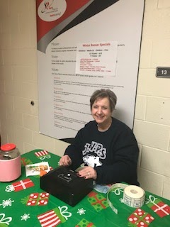 Of course, where would we be without our fabulous Mrs. Papi. Here she is helping to sell tickets at the entrance to our Winter Bazaar!!!